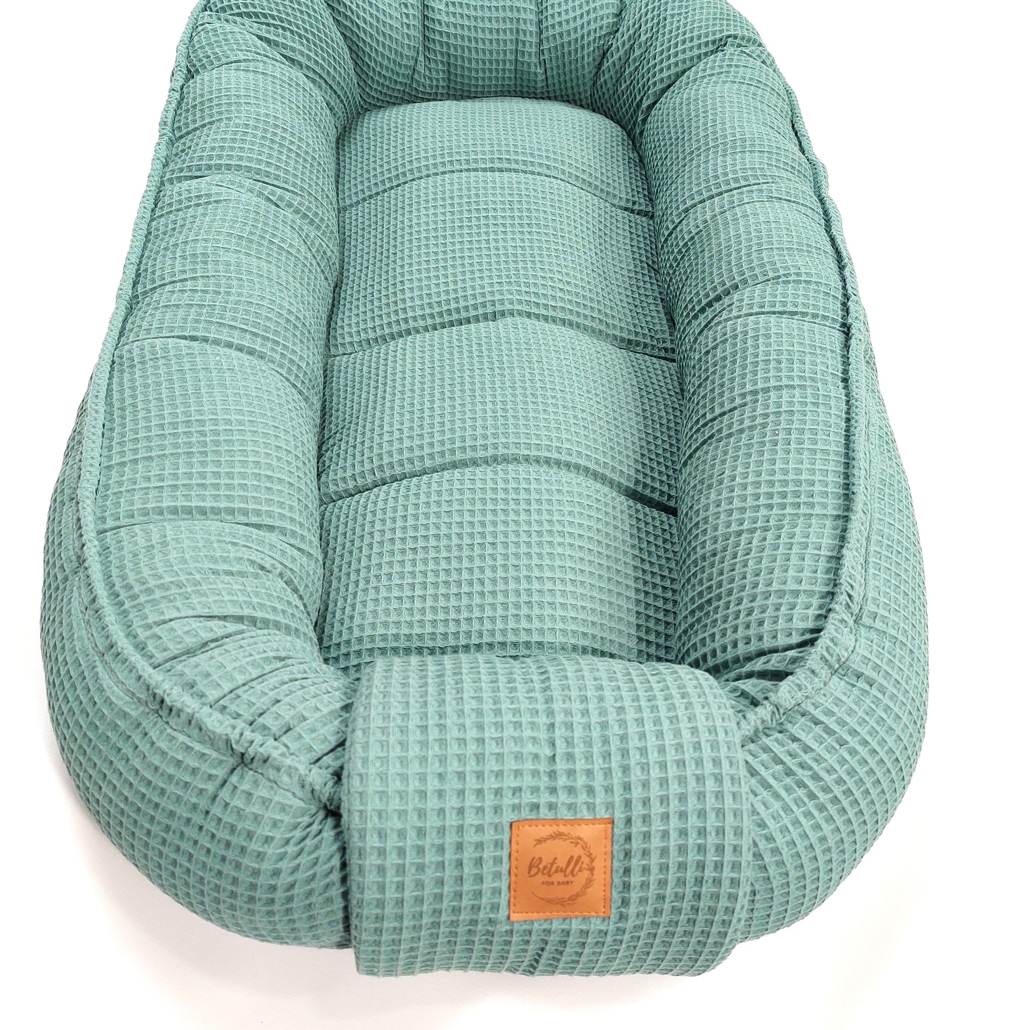 Im Betulli Babynest fühlt sich dein Baby rundum wohl, sicher und geborgen – fast wie bei Mama. Weiche Materialien, durchdachtes Design und vielseitige Einsatzmöglichkeiten machen es zu einem unverzichtbaren Begleiter in den ersten Monaten. Jetzt erhältlich in der stilvollen Farbe Altgrün – ein natürlicher Ton, der perfekt in jedes moderne Kinderzimmer passt.