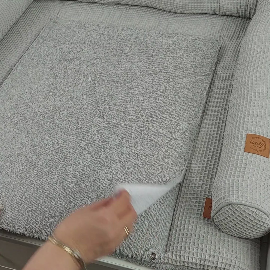 Unsere Betulli-Wickelauflagen vereinen durchdachtes Design, hochwertige Materialien und echten Komfort für Eltern und Babys. Damit kleine Missgeschicke beim Wickeln kein großes Problem sind, bieten wir eine abnehmbare, wasserdichte Auflage mit Druckknöpfen – praktisch, zeitsparend und leicht zu reinigen. Jetzt erhältlich in der stilvollen Farbe Hellgrau – ein natürlicher Ton, der perfekt in jedes moderne Kinderzimmer passt.