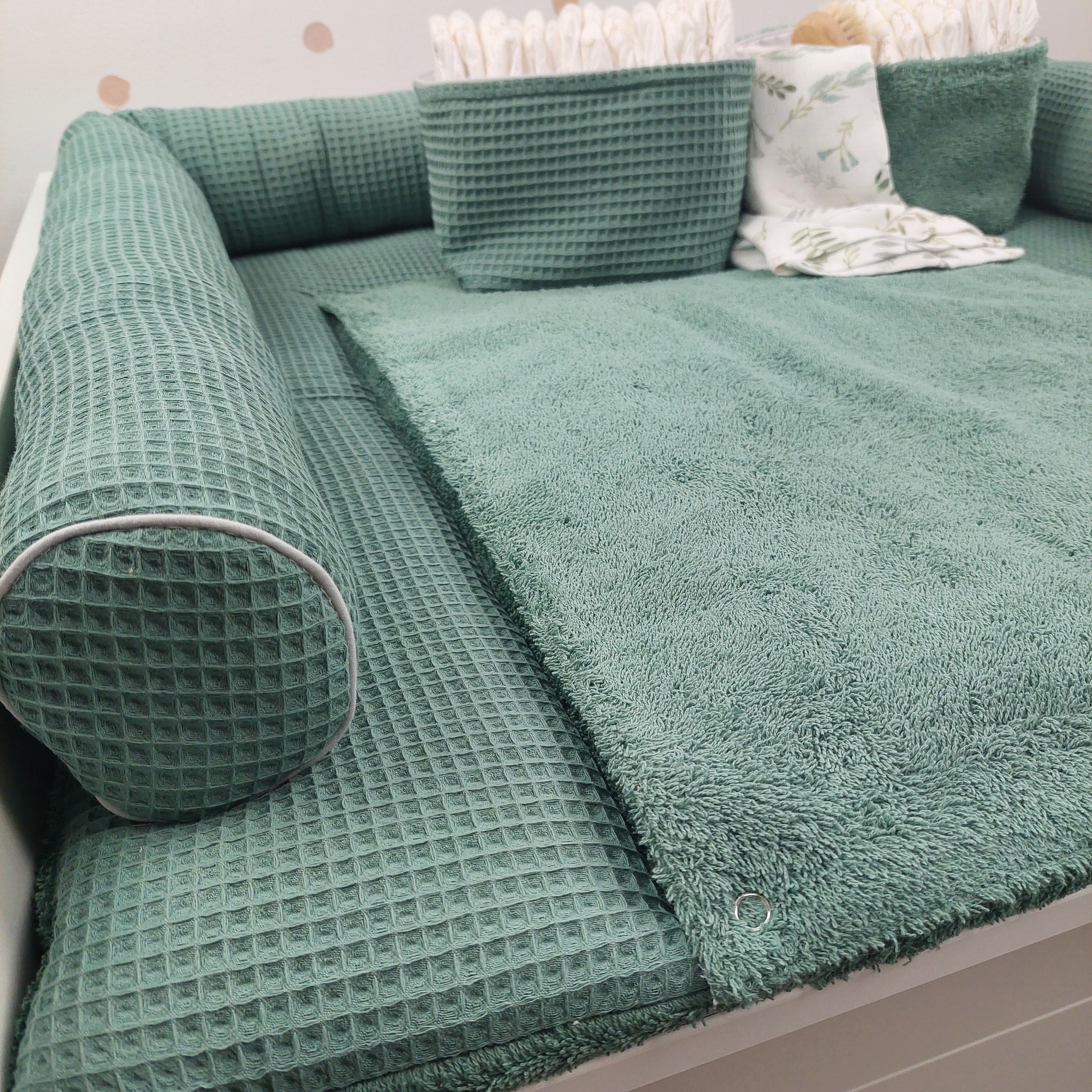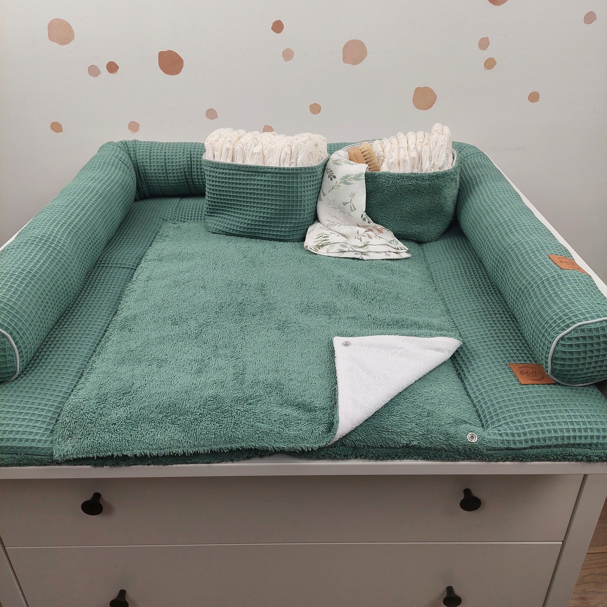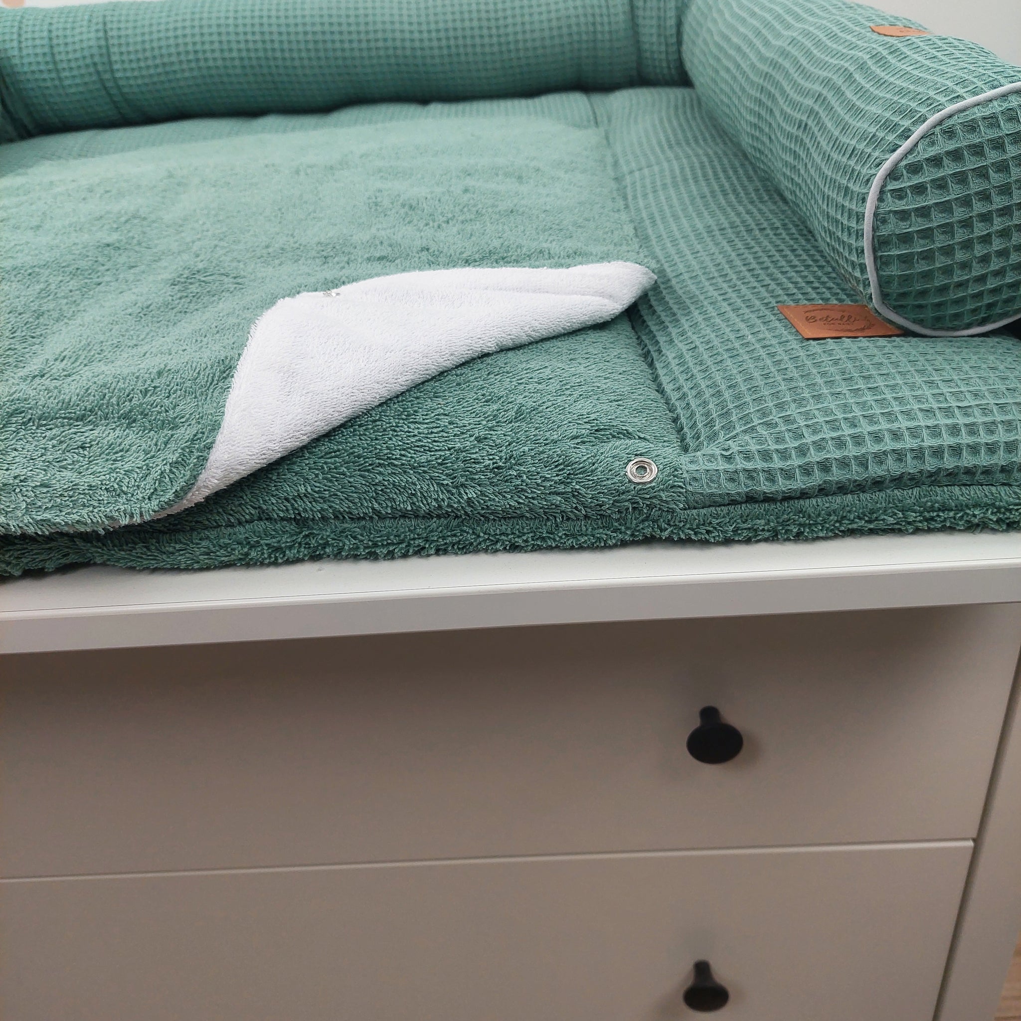 Unsere Betulli-Wickelauflagen vereinen durchdachtes Design, hochwertige Materialien und echten Komfort für Eltern und Babys. Damit kleine Missgeschicke beim Wickeln kein großes Problem sind, bieten wir eine abnehmbare, wasserdichte Auflage mit Druckknöpfen – praktisch, zeitsparend und leicht zu reinigen. Jetzt erhältlich in der stilvollen Farbe Altgrün – ein natürlicher Ton, der perfekt in jedes moderne Kinderzimmer passt.